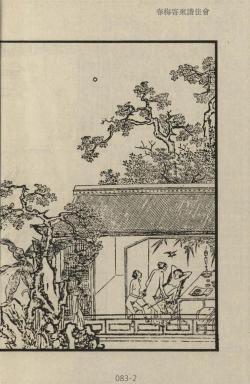 到于晚夕,婦人先在後邊月娘前,假托心中不自在,用了個金蟬脱殼,歸到前邊。月娘後邊儀門老早開了,丫鬟婦人都放出來,要聽尼僧宣卷。金蓮央及春梅,説道:「好姐姐,你快些請他去罷。」春梅道:「等我先把秋菊那奴才,與他幾鐘酒,灌醉了,倒扣他在厨房内。我方好去。」于是篩了兩大碗酒,打發秋菊吃了,扣他在厨房内,拿了個筐兒,走到前邊,先撮了一筐草,就悄悄到印子鋪門首,低聲叫門。正值傅夥計不在鋪中,往家去了。獨有敬濟在炕上纔𢱉下,忽見有人叫門,聲音像是春梅,連忙開門,見是他,滿面笑道:「果然是小大姐,没人,請裏面坐。」春梅走入房内,便問:「小厮們在那裏?」敬濟道:「玳安和平安,都在那邊生藥鋪中睡哩,獨我一個在此受孤淒,挨冷淡。」春梅道:「俺娘多上覆你,説你好人兒,這幾日就門邊兒也不往俺那屋裏走走去。説你另有了對門主顧兒了,不稀罕俺娘兒每了。」敬濟道:「説那裏話,自從那日着了諕,驚散了,又見大娘緊門緊户,所以不敢走動。」春梅道:「俺娘爲你這幾日心中好生不快,逐日無心無緒,茶飯懶吃,做事没入脚處。今日大娘留他後邊聽宣卷,也没去,就來了。一心只是牽掛想你,巴巴使我來,好歹教你快去哩。」敬濟道:「多感你娘兒們厚情,何以報答?你略先走一步兒,我收拾了,隨後就去。」一面開櫥門,取出一方白綾汗巾,一副銀三事挑牙兒與他。就和春梅兩個摟抱,按在炕上,且親嘴咂舌,不勝歡謔。正是: